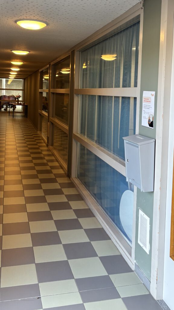 In de gang vanuit de hal van De Rauwendael naar de liefkenshoek vindt u aan de linkerzijde een brievenbus. Daar bevindt zich het kantoor van de wijkverpleegkundige.